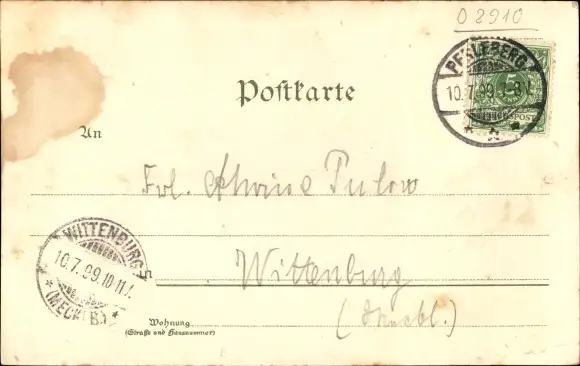 Zustand, siehe Scan, gelaufen, 1899 - ca 14 cm X 9 cm