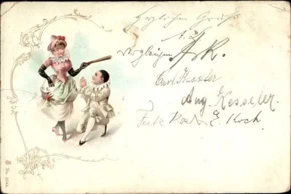 Litho Pierrot bekniet eine Dame