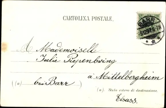 Zustand, siehe Scan, gelaufen, 1897 - ca 14 cm X 9 cm