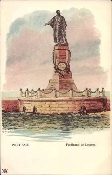 Litho Port Said Ägypten, Monument Ferdinand de Lesseps