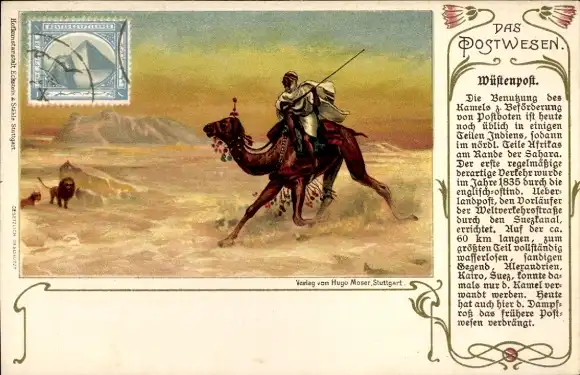 Litho Postwesen, Wüstenpost, Mann auf Kamel reitend