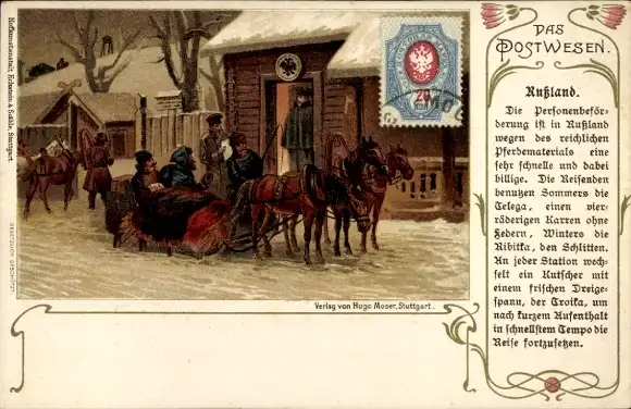 Litho Postwesen in Russland, Schlittengespann, Briefmarke