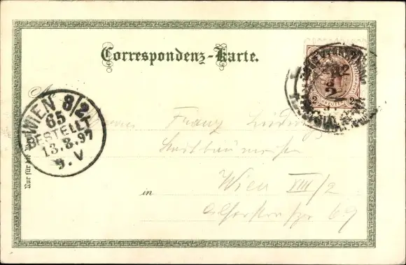 Zustand, siehe Scan, gelaufen, 1897 - ca 14 cm X 9 cm