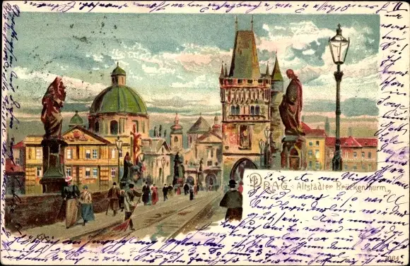 Litho Praha Prag Tschechien, Altstädter Brückenturm