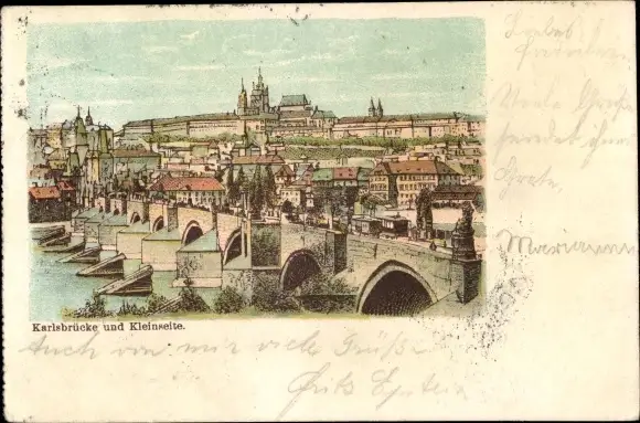 Litho Praha Prag Tschechien, Karlsbrücke und Kleinseite