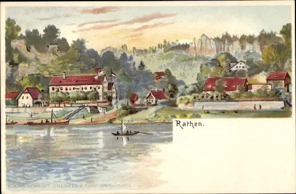 Litho Rathen an der Elbe Sächsische Schweiz, Ortsansicht