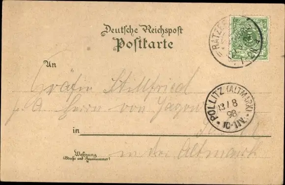 Zustand, siehe Scan, gelaufen, 1898 - ca 14 cm X 9 cm