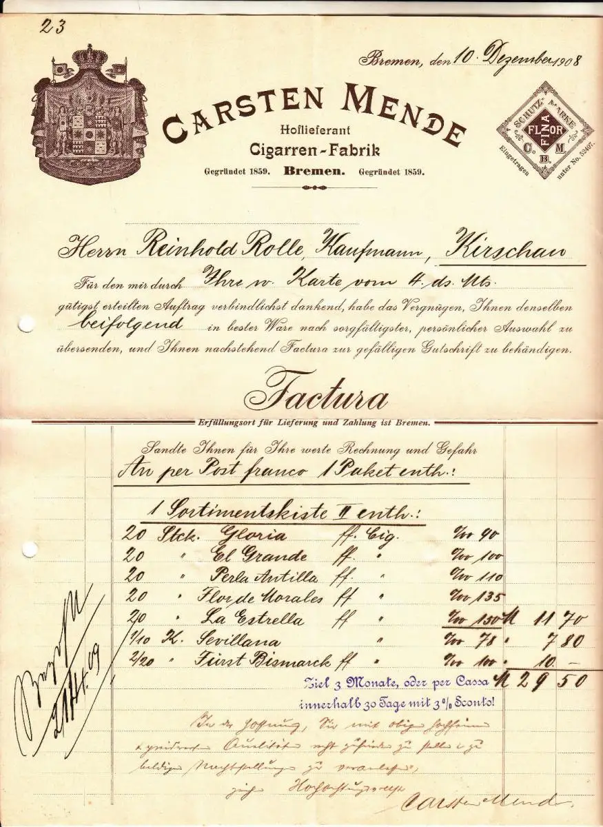 Originale Litho - Rechnung, Format etwas größer als A 4.