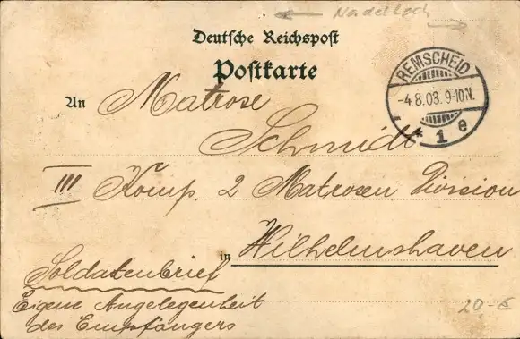 Zustand, siehe Scan, gelaufen, 1903 - ca 14 cm X 9 cm