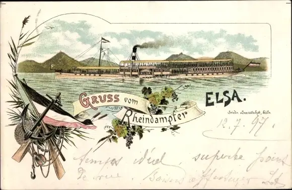 Litho Rheindampfer Elsa, Bingen am Rhein