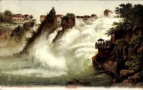 Litho Rheinfall Kanton Schaffhausen, Wasserfall, Zuschauer