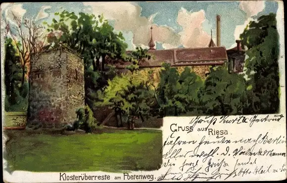 Litho Riesa an der Elbe Sachsen, Klosterüberreste am Poetenweg