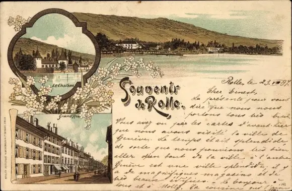 Litho Rolle Kt. Waadt Schweiz, Totalansicht, Grande Rue, Le Château