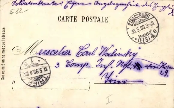 Zustand, siehe Scan, gelaufen, 1899 - ca 14 cm X 9 cm