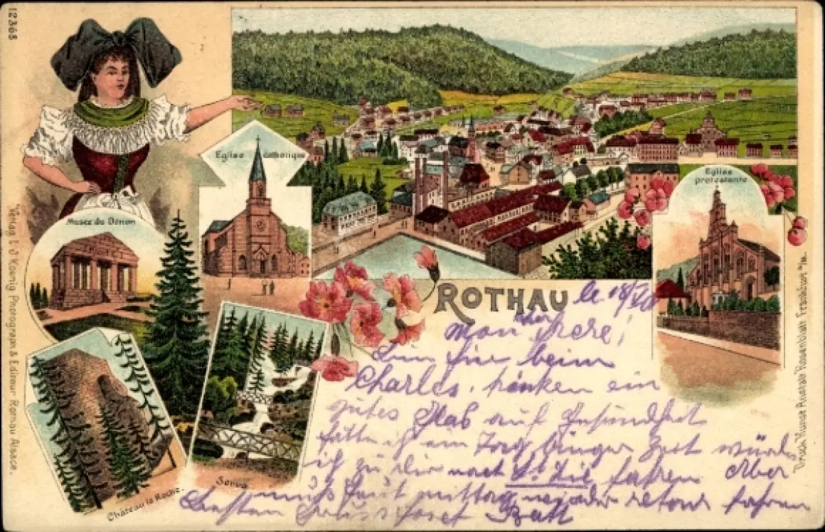 Litho Rothau Elsass Bas Rhin, Museum, Kirche, Elsässerin
