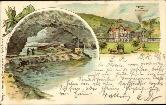 Litho Rottleben Kyffhäuserland in Thüringen, Gasthaus zum Barbarossa, Barbarossahöhle