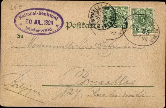 Litho Rüdesheim Rhein, National Denkmal Niederwald