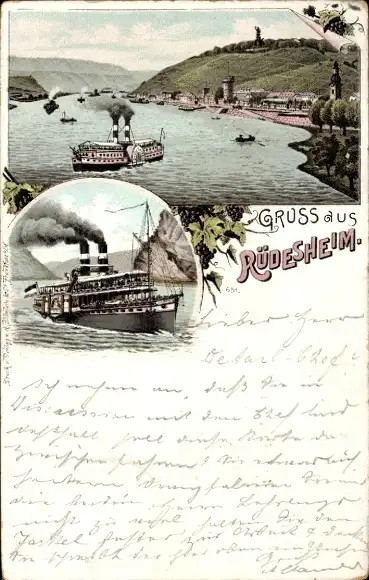 Litho Rüdesheim am Rhein, Dampfer, Ort