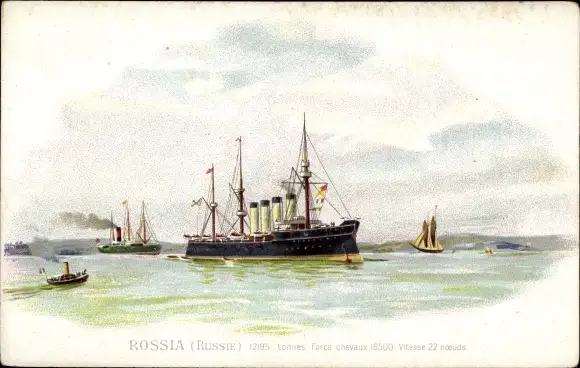 Litho Russisches Kriegsschiff Rossia