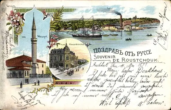 Litho Rustschuk Russe Bulgarien, Hafen, Moschee, Alexandrowska-Straße