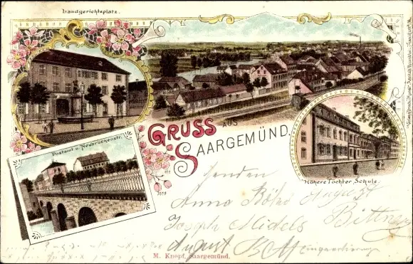 Litho Saargemünd Sarreguemines Lothringen Moselle, Landgerichtsplatz, Postamt
