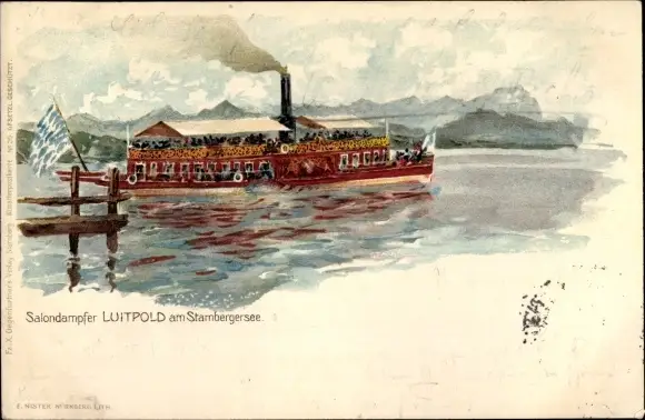 Litho Salondampfer Luitpold am Starnberger See