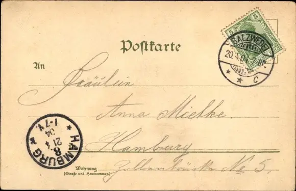Zustand, siehe Scan, gelaufen, 1904 - ca 14 cm X 9 cm