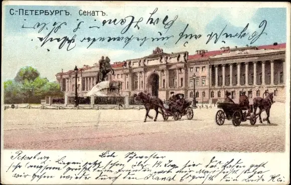 Litho Sankt Petersburg Russland, Ortsansicht, Kutsche, Denkmal