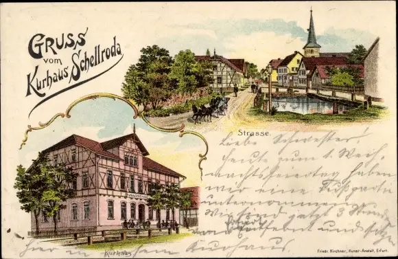 Litho Schellroda Klettbach in Thüringen, Kurhaus, Straßenpartie