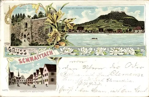 Litho Schnaittach in Mittelfranken, Ruine der Festung Rothenberg, Marktplatz