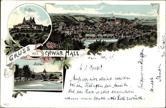 Litho Schwäbisch Hall in Württemberg, Comburg, Panorama, Soolbad