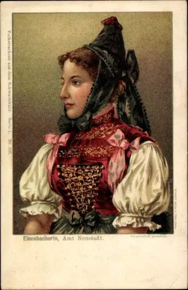 Litho Schwarzwald, Eisenbacherin, Frau in Volkstracht