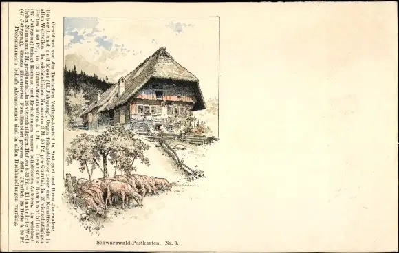 Litho Schwarzwald Postkarten Nr. 3, Schwarzwaldhaus, Schafherde