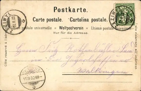 Zustand, siehe Scan, gelaufen, 1902 - ca 14 cm X 9 cm