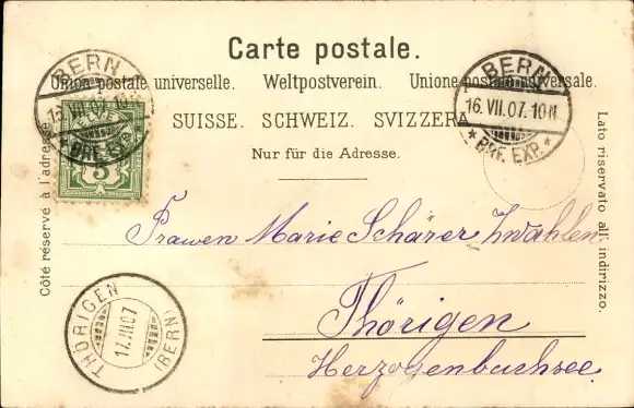 Zustand, siehe Scan, gelaufen, 1907 - ca 14 cm X 9 cm