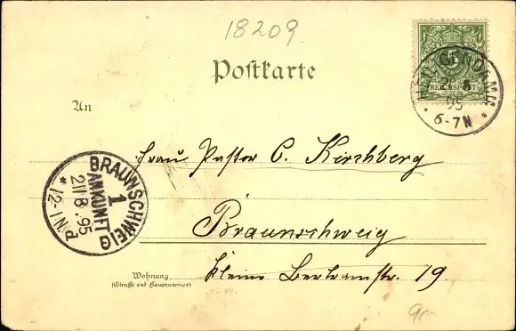 Zustand, siehe Scan, gelaufen, 1895 - ca 14 cm X 9 cm