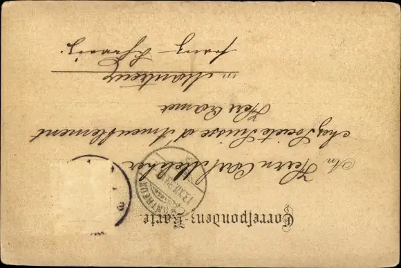 gelaufen 1899, Briefmarke entfernt, Ecken und Kanten bestoßen, sonst guter Zustand