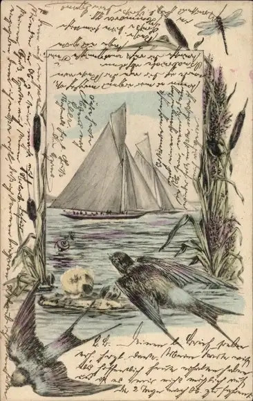 Ansichtskarte, Postkarte, Hafen, Schiffe, Boote, Dampfer, Boot