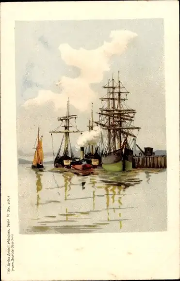 Ansichtskarte, Postkarte, Hafen, Schiffe, Boote, Dampfer, Boot