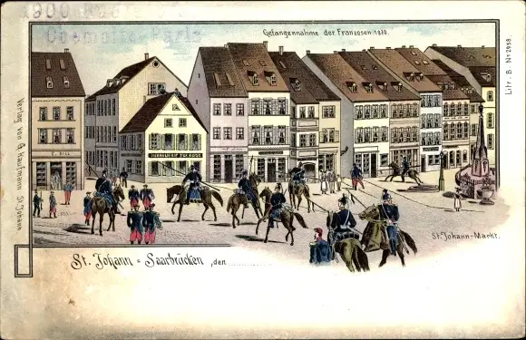 Litho St. Johann Saarbrücken, Gefangennahme der Franzosen 1870, Markt