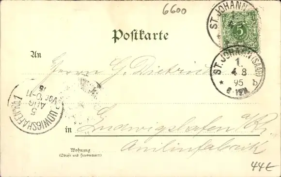 Zustand, siehe Scan, gelaufen, 1895 - ca 14 cm X 9 cm