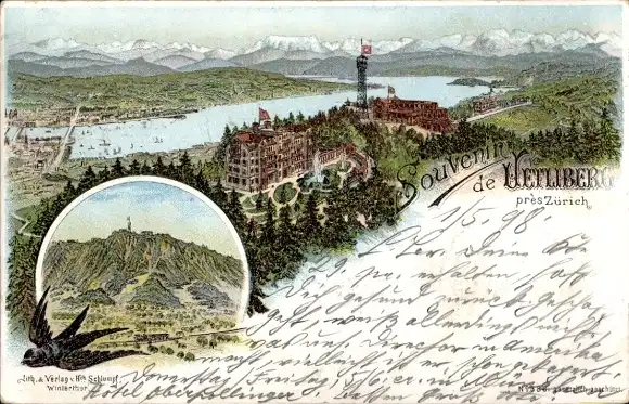 Litho Stadt Zürich Schweiz, Uetliberg, Panorama