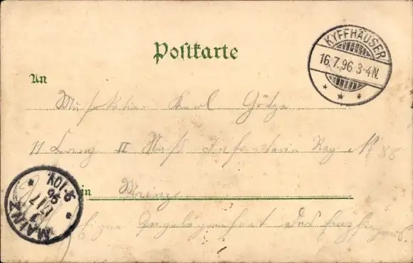 Zustand, siehe Scan, gelaufen, 1896 - ca 14 cm X 9 cm