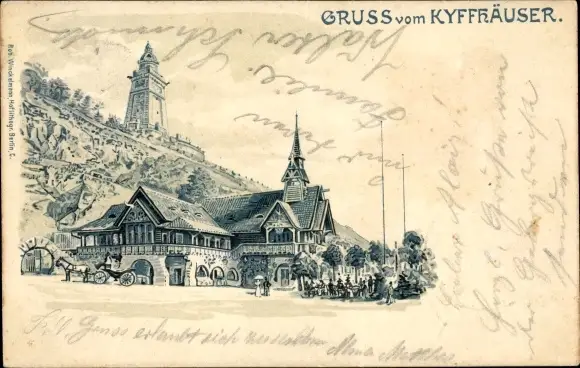 Litho Steinthaleben Kyffhäuserland in Thüringen, Kyffhäuser, Kaiser Wilhelm Denkmal, Gasthaus