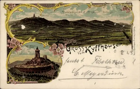 Litho Steinthaleben Kyffhäuserland in Thüringen, Kyffhäuser, Kaiser Wilhelm Denkmal, Panorama