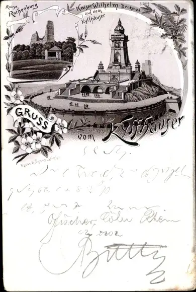 Litho Steinthaleben Kyffhäuserland in Thüringen, Kyffhäuser, Kaiser Wilhelm Denkmal, Rothenburg
