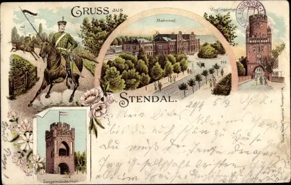 Litho Stendal Altmark, Husar, Bahnhof, Tangermünder Tor, Uenglinger Tor