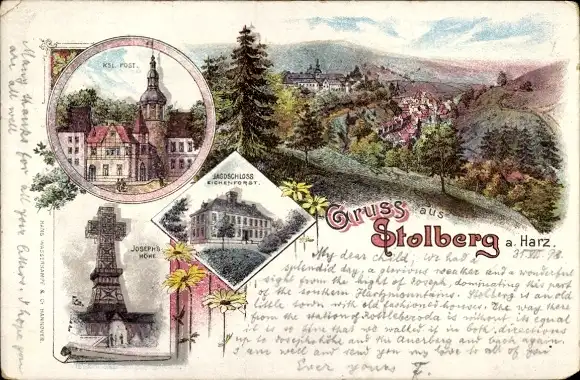 Litho Stolberg im Harz, Panorama, Kaiserliche Post, Jagdschloss Eichenforst, Josephshöhe