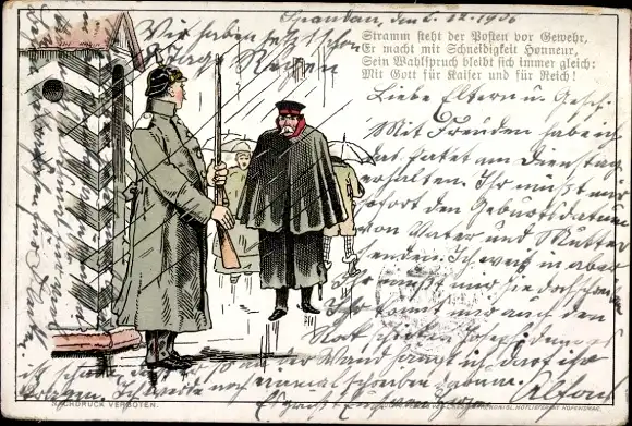 Litho Stramm steht der Posten vor Gewehr, Deutsche Soldaten in Uniformen