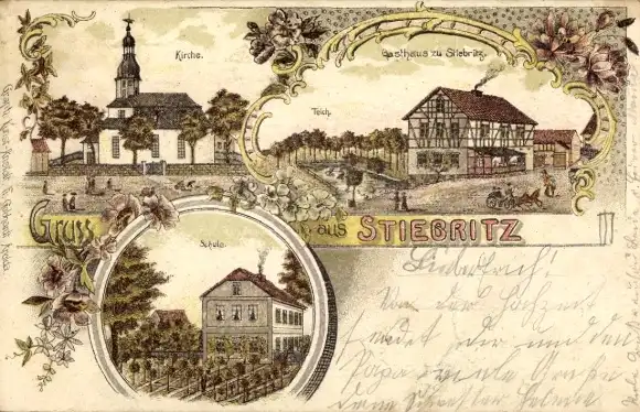 Litho Striebritz Hainichen in Thüringen, Kirche, Schule, Gasthaus